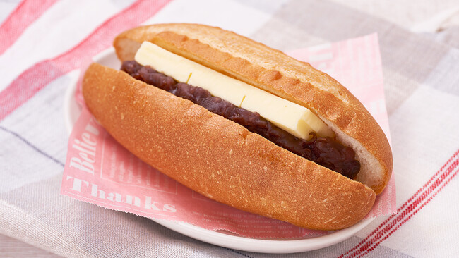 フランスパンにつぶあんとバターを挟んだあんバターフランスパンです。つぶあんの甘みとバターの塩味が絶妙な味わいです。
