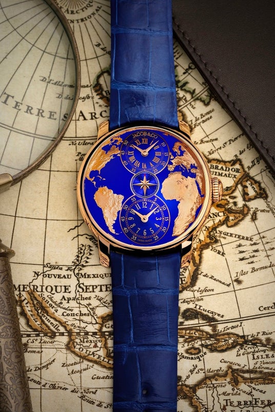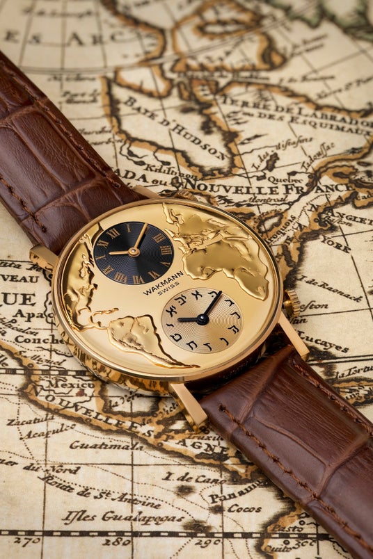 2つのタイムゾーン、機械式ムーブメント、そして金色に輝く世界地図。
