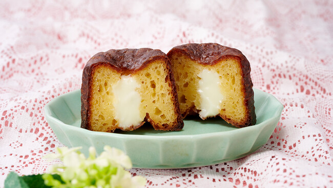 しっとりもっちり食感のカヌレに、ホワイトチョコクリームを入れました。