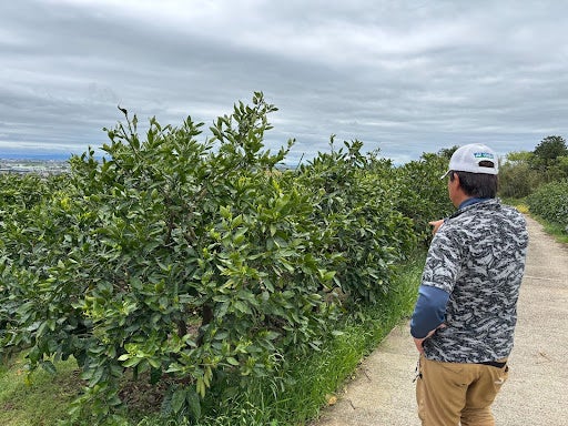 一方、ここ数年最高気温が38℃を超える日があるなど、低地での栽培が難しくなってきているなか、昨シーズンには高温障害が起き、ミカンの生産量が激減。農園が始まって以来、最低の収量となってしまいました。高温下でもミカンの生産を続けたいと、このたびのスキーポンの実証実験にご協力いただけることとなりました。