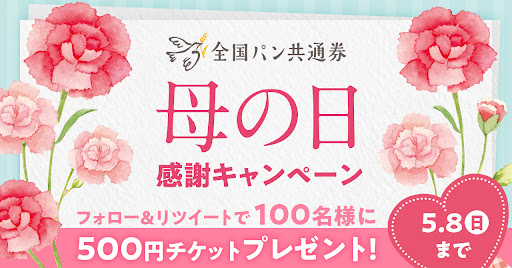 ネットで贈れるパンギフト券『全国パン共通券』がその場で当たる「母の日 感謝キャンペーン@Twitter」