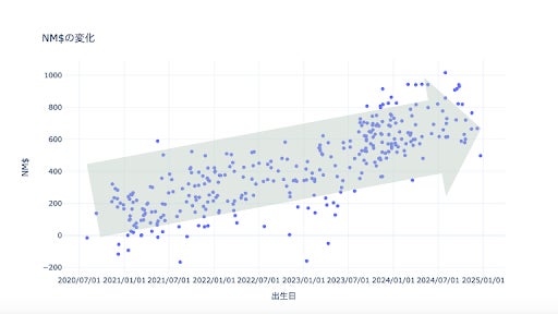 2021年から2025年のNM$の変化。NM$平均は600台まで上昇*本データは2025.4.1のCDCBによるベースチェンジ(基準値の改訂)前の評価に基づくものです。