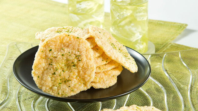 天然えびの豊かな香りと、深い味わいをそのまま活かした本格派えびせんべいに、JA全農 京都の推奨、京の伝統野菜 九条ねぎを使用し古都の趣を醸し出した逸品です。十一日間もの時を経て完成される本格派熟成えびせんべい。