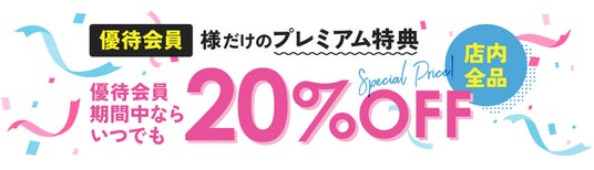 - 優待会員になると、1年間20%OFFでお買い物が可能となります。