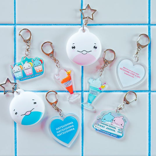 初島名産の“ところてん”を使った、カフェの看板メニュー「初島パフェ」をモチーフにした、オリジナルTシャツやアクリルキーホルダーなど。旅の記念としてはもちろん、カフェの世界観ごと“持ち帰る”楽しさを演出します。