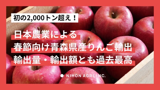 日本の農産物の生産から販売まで一気通貫で展開し、新たな産業構造を創出する株式会社日本農業(本社:東京都品川区、代表取締役CEO:内藤祥平、以下「日本農業」)は、春節向けに中華圏を中心としたアジア各国への青森県産りんごの輸出実績を発表しました。2024年度の輸出量は、初めて2,000トンを超える約2,761トンに達しました。また、輸出額も過去最高の約15.8億円となりました。