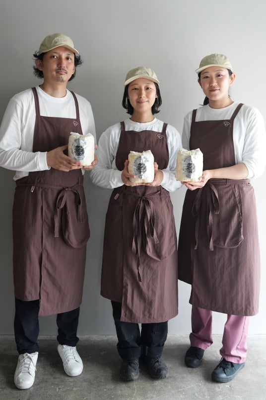 料理や栽培で使用するエプロンは、山道具メーカー〈山と道〉で道具を開発する際に残っていた生地を提供いただき、パタンナーの土川さんにオリジナルのデザインに仕上げていただきました。