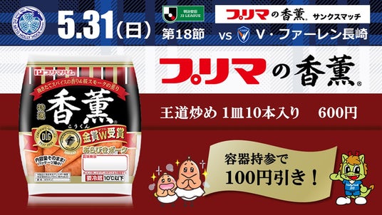 このたび、5月31日(土)に開催するホームゲーム、2025明治安田J2リーグ第18節 水戸ホーリーホックvs.V・ファーレン長崎を、プリマハム株式会社にご支援いただき『プリマの香薫(R)サンクスマッチ』として開催いたします。