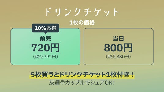『まとめ買い特典』5枚購入でドリンクチケット1枚プレゼント