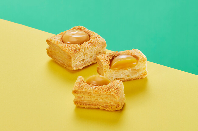 512層に折り込まれたパイ生地に北海道十勝産のパルメザンチーズパウダーをひと振りして焼き上げました。