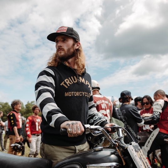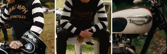 徹底的にこだわり抜いたクオリティの生地、情熱と卓越した職人技が織りなすアイテムの数々が、伝統的でトライアンフらしいアイコニックなスタイルで登場致します。クラシックなモトクロススタイルにインスパイアされたデザインのTシャツ、スウェットシャツ、そしてキャップ、そして上質なレザーやワックスコットンを使用したジャケットで豊富なアイテムを取り揃えています。全世界で限定された店舗より発売を開始致します。