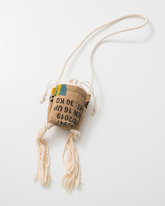 さらにコーヒー豆を輸入する際に使う麻袋を使った巾着バッグとボトルバッグも同時発売となり、まるでミルクとシロップが添えられたかのような、コーヒーのタイニーコレクションが完成! 食とファッションをつなぐこの取り組みは、前回の大阪万博をどこか懐かしく想起させる、“仕掛け”のあるアイテムへと昇華しました。