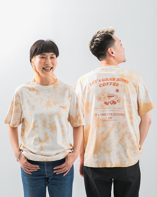 缶コーヒーを発明したUCC。その柔軟な創造性は、抽出後のコーヒー粉を再利用する環境対策の姿勢にも見られます。飲み終わった後に残るコーヒー粉は主に、燃料や堆肥、再生紙や陶器の釉薬、染料など、さまざまな思いもよらないものへと姿を変えているからです。中でも、私たちが得意とする“洋服”との相性が良いのは、やはり染め。そこで今回のアーバン博では私たちと同じく関西企業であるUCCとの共創により、 コーヒー染めを施したTシャツを販売します。しかもEXPO’70で世界に羽ばたいたUCCミルクコーヒーを模したケース入り。ノスタルジックなパッケージと、コーヒー染めの温かみのある色合いが絶妙にマッチしています。
