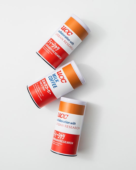 UCCは1969年に世界初の缶コーヒーを開発・発売し、翌1970年3月から大阪で開催された「日本万国博覧会」に来場した多くの人の目にとまり、大阪万博をきっかけにヒットし、その後全国に広がりました。アーバンリサーチが2025年日本国際博覧会(大阪・関西万博)へ出店していることから、現在展開している『UCCミルクコーヒー』のパッケージを模したケースにTシャツを入れています。