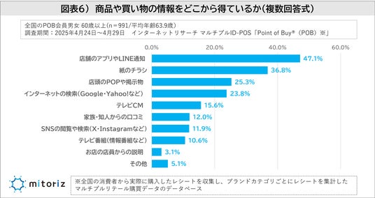 商品や買い物の情報入手は「店舗のアプリやLINE通知」が47.1%で「紙のチラシ」を上回る