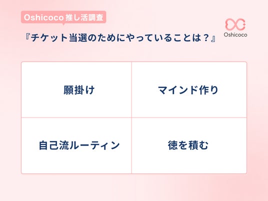 推し活層の中には「欲を出すと(チケットや抽選に)外れる」=何も考えないのが良い」といった考えをする人も一定数おり、無欲になるための独自の精神コントロール法を導入しているそうです。逆に、「念じて当てる派」も健在で、マインドセットの幅は非常に広いことがわかります。