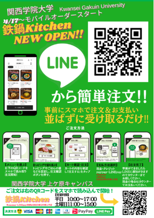 関西エリアで4店舗目の出店となる関西学院大学では、老舗たこ焼き店「龍馬亭」とコラボ出店いたします。学生たちに大人気の鉄鍋料理だけでなく、たこ焼き、クレープ、ソフトアイスなど、ランチタイム以外にも楽しんでいただけるメニューも提供します。学生や教職員の方はもちろん、地域のお母さんたちも子連れでお越しいただけるような解放的な空間で、より身近で親しみやすい「地域と共生する学食」という学食の新しいあり方を提案して参ります。