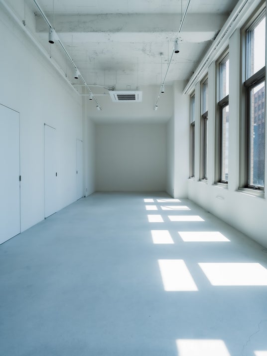「ROHKE(ローク)」真っ白な空間にデザイナーズチェア等、そこに存在する商品や展示、モデルを引き立たせるギャラリー。日中には自然光が入り、夜の撮影にも適した、調光付きの照明を完備。
