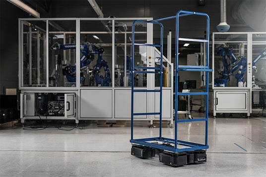 今使っているラックや台車をAMRに変える「自律型ホイール搬送ロボット」