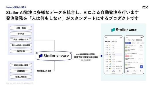 株式会社10X(本社:東京都中央区、代表取締役CEO:矢本真丈、以下10X)は、小売現場向けAI・DXプラットフォームに進化した「Stailer」の新プロダクト第一弾として、「Stailer AI発注」を本日より公開・販売開始します。同時に、導入パートナーとして、株式会社デリシアの導入が決定していることをお知らせいたします。