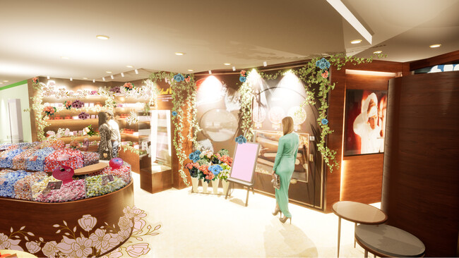 2023年2月2日(木)~2月14日(火)までの期間限定でオープンする『リンツ ハピネスガーデン 表参道』は、現在発売中の「リンツ バレンタインコレクション 2023(※)」のテーマである“幸せがはじまる風景”の世界観を表現し、幸せのフラワーガーデンをイメージした店舗となっております。華やかな外観からも溢れ出る幸せのオーラを感じながら店内に一歩足を踏み入れると、そこにはたくさんの花々とチョコレートに囲まれた幸せを体感できる空間が広がります。