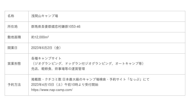 ご予約は、4月15日(土)午前10時よりキャンプ場予約サイト「なっぷ」で受付開始いたします。
