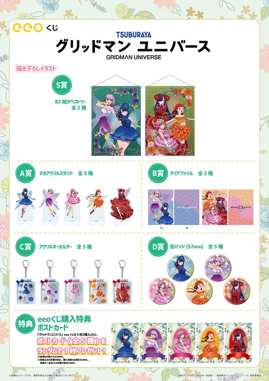 描き下ろしイラストを使用して、豪華景品が勢ぞろいした『グリッドマンユニバース』の「eeoくじ」。