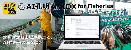 こうした変化に対応するため、企業データとAIの利活用カンパニー、AIデータ株式会社(本社:東京都港区、代表取締役社長 佐々木隆仁、以下AIデータ社)は、次世代AIプラットフォーム「AI孔明(TM) on IDX」の業界別モジュールとして、漁業・水産業向け「AI孔明(TM) on IDX for Fisheries」リリースしました。