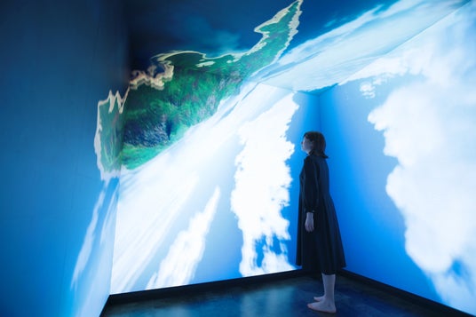 鑑賞者を起点に映像が回転し、まるで浮遊しているような体験が可能
