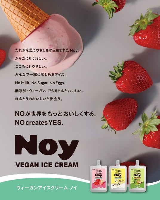 Noyは、無添加で砂糖不使用のヴィーガンアイスとは思えないほどの美味しさと、動物性不使用で無添加だからこそ実現できた、食べた後の口に残らないスッキリ感。最後に砂糖不使用であることの低カロリー。是非この機会にNOが創り出したYESの美味しさをご堪能いただければ幸いです。