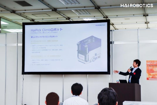 展示会のセッションでは、HAI ROBOTICS JAPANの営業部ディレクター・安部純一郎が登壇し、以下のように述べました:「現在、テクノロジーの進化はあらゆる業界に変革をもたらしています。特にアパレル業界、小売業界、製造業界においては、効率的かつ迅速な物流戦略への転換が求められています。HAI ROBOTICSのソリューションズは、小規模のプロジェクトからスタートし、業務ニーズに適応しながら段階的に導入できる設計となっており、ロボットを追加するだけで事業拡張の実現が可能です。」
