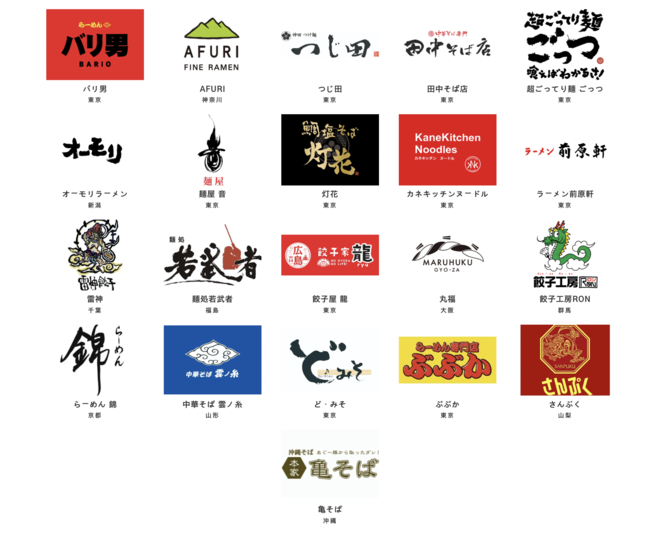 販売商品:バリ男 らーめん、超ごってり麺 ごっつ、雷神 雷神餃子、王道家、AFURI 柚子塩ラーメン