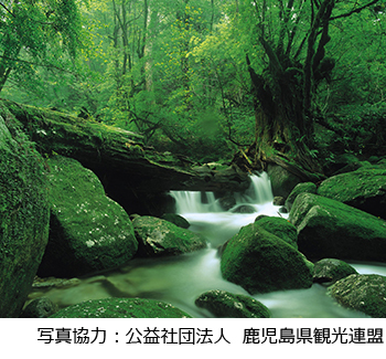 世界自然遺産の屋久島は、広大な自然休養林が広がり、スギやツガなどの大木を見ることができます。中でも白谷雲水峡の苔に覆われた森は、雨が降ると苔の雫がキラキラ輝き、より一層美しい姿を見せてくれます。※大雨などにより増水すると沢が渡れなくなります。増水時の散策などは十分注意ください。