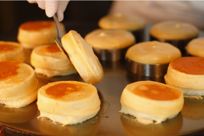 生地にはイタリア産リコッタ、クリームチーズ、マスカルポーネの3種類をブレンドし、極上のふわふわ食感を実現。またオリジナルの雑穀「ホワイトシリアル」を採用し軽やかに仕上げました。注文を受けてからシェフが鉄板で丁寧に焼き上げるため、出来立てのふわふわ食感をお愉しみいただけます。