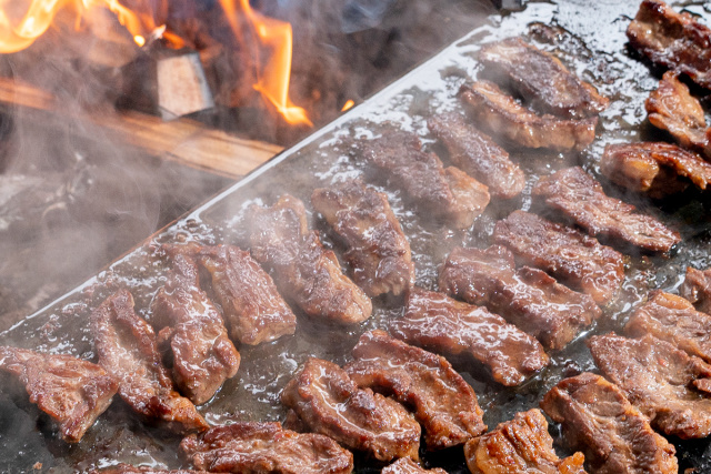 あつあつをごはんとご一緒に!BBQで味わう名店のハラミ!