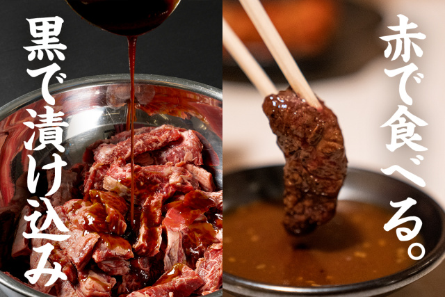 「黒」で漬け込み、「赤」で食べる、名店秘伝のタレ!
