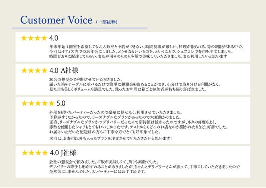 ■ 提供内容:ライブ鮨、鮨+オードブル、空間装飾など