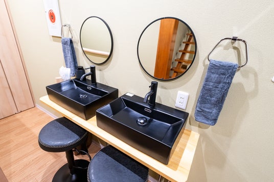 各フロアに設けられた洗面スペースとバスルーム。同時利用もスムーズで、大人数でも快適に。