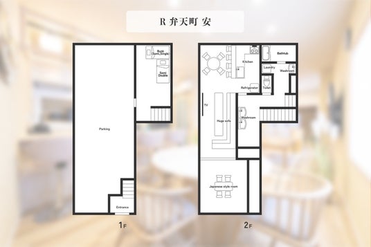 最寄駅はJR大阪環状線・大阪メトロ中央線の「弁天町駅」。徒歩8~10分圏内にあり、ユニバーサル・スタジオ・ジャパン(USJ)や大阪市内の観光地へのアクセスも抜群。駐車場も2台分備えており、車での来訪にも便利です。