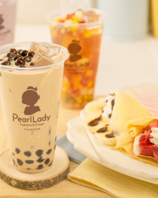 【パールレディ】今年22周年を迎える日本生まれのタピオカ&クレープの老舗ブランド。自社工場で生産しているタピオカや白玉など幅広いトッピングとドリンクを組み合わせたスイーツドリンクを多数展開。