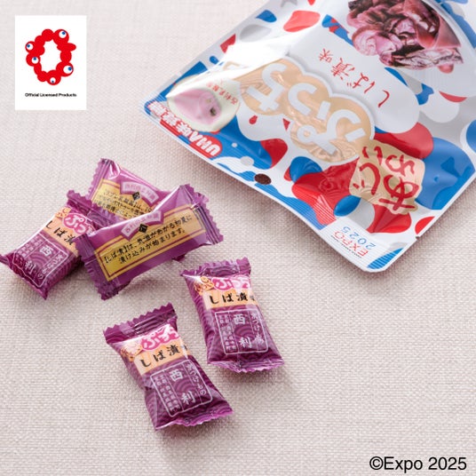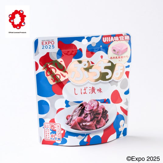 西利のしば漬を使用し、京都ならではの味わいに仕上げました。ほんのり香るしば漬の酸味がクセになる一粒で、ぷっちょの中には西利のラブレ乳酸菌が入っています。個包装タイプで配りやすく、手軽な塩分補給にもおすすめです。パッケージは大阪・関西万博公式キャラクター「ミャクミャク」をイメージした赤と青のデザインで、万博の世界観を表現しています。