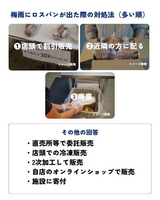 パン屋はロス削減のため、通販でのロスパン販売や店頭での割引など工夫を重ねていますが、それでも梅雨の到来には不安を抱える声が多く聞かれます。