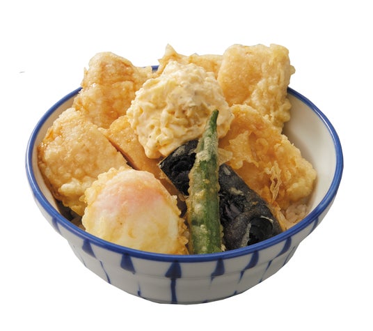 鶏もも天のたっぷりタルタル天丼 990円(税込み)大ぶりの鶏もも天を食べやすいサイズにカットして、たまご天や野菜天と共に天丼に仕立てました。
