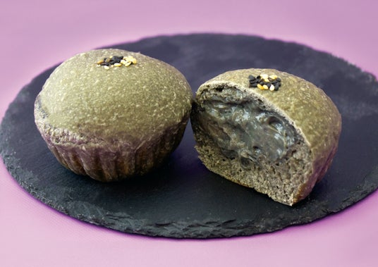 黒胡麻生地に黒胡麻カスタードを包み焼き上げました。ふわっと軽い食感の生地にカスタードはなめらかな口当たりで、黒胡麻の香ばしい香りと味わいを心ゆくまでお楽しみいただける一品です。