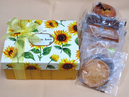 ひまわり柄の限定BOXに焼菓子8個が入ったお得なセット。
