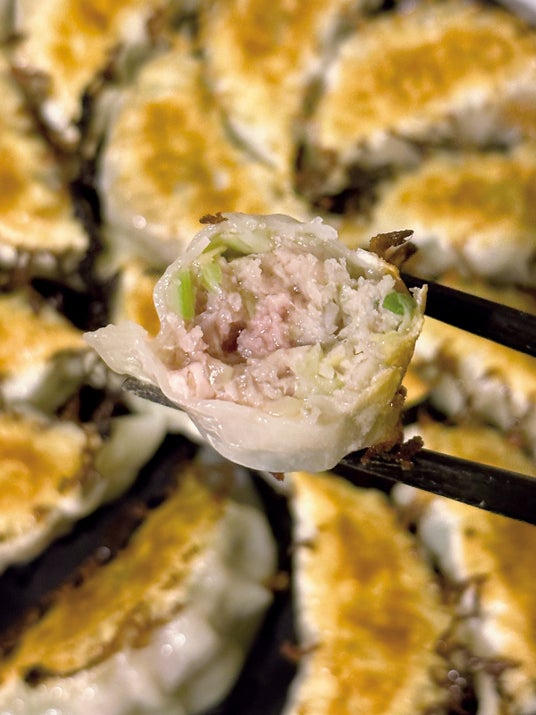クック井上。「キャベツまたは白菜、豚挽き肉、にら、にんにく、生姜と決まった材料を使っているのに、皮の厚さやサイズ、餡の野菜の刻み具合、こね方、包み方、ひだのつけ方などでまったく味わいが変わる。同じ材料で同じレシピで作っても、包む人によって味わいが大きく変わるのが魅力です」
