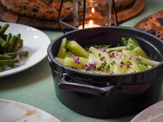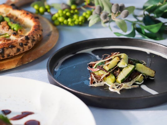 ランチメニューに加え、ディナータイムには、より風味豊かで贅沢な“大人の味わい”をテーマとした特別メニューをご用意しております。「カジキの燻製 奈良漬けとオレンジのソース」や漆黒のイカ墨パスタと絡めた「ウニとズッキーニのイカ墨パスタ」は、ひと口ごとに広がる海の旨みと、クリーミーな食感が魅力の逸品です。また、豊かな自然と伝統の技で育まれた大和肉鶏を使用した「大和肉鶏のカチャトーラ風」では、柔らかく上質な肉質を最大限に活かし、シェフ特製のソースとともに炭火で丁寧に焼き上げてご提供いたします。さらに、「葛城市産・桑の葉のガトーフロマージュ メロンとディル」は、瑞々しいメロンの甘みと香り高いディルが溶け合い、極上の余韻をお楽しみいただけます。特別な一日の締めくくりにふさわしい、心に残るディナータイムをぜひご堪能ください。