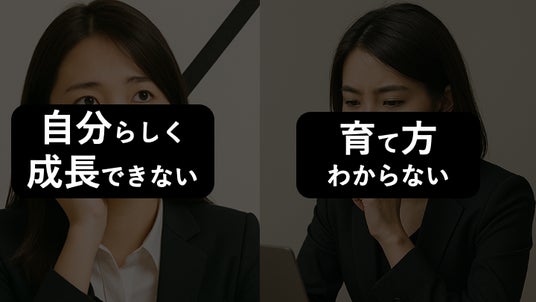 若手の「自分らしく成長できない」という悩みと管理職の「若手をどう育てたらいいのかわからない」という悩みがある。