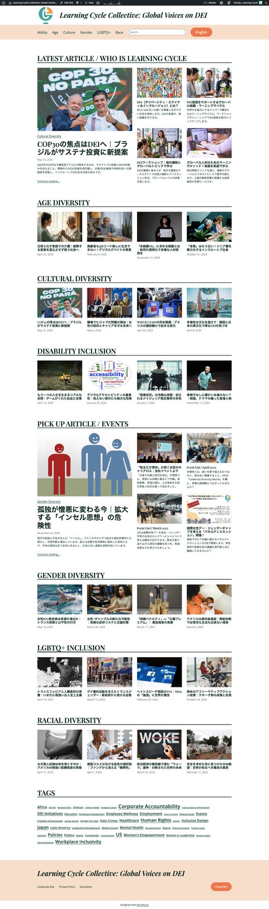メディアのタイトルも「Learning Cycle Collective: Global Voices on DEI」へと刷新し、これまで以上にさまざまな地域、多様な視点からDEIに関する情報を発信します。最近では「インセル」、「敵対的建築」、「ノンバイナリー」といったトピックが特に関心を集めており、単なる情報提供にとどまらず、DEIへの反発(バックラッシュ)にも向き合いながら、企業のインクルーシブ経営を支える実践的な知見をお届けしています。