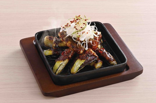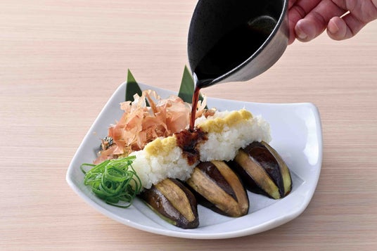 茄子の焼きびたし香ばしく焼き上げた旬の茄子を、冷やしただし汁をかけてお召し上がりいただきます。暑い日にぴったりの、見た目も涼やかな一品です。